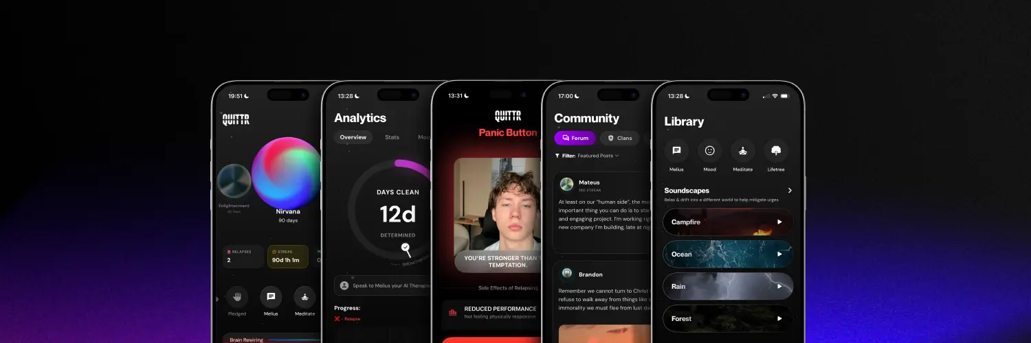 Start your journey with our porn addiction recovery app and become the best version of yourself. The benefits feel great, trust us - The QUITTR Team